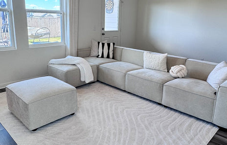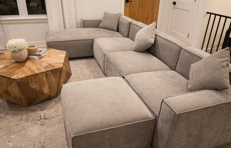 This modular sectional is exactly what we were looking for. The flexibility to move seats around, add arms and reconfigure in any way you want is so great! Firm and soft at the same time. More beautiful than the online photos. Love it!!!