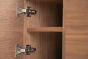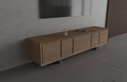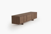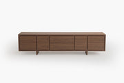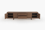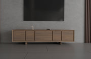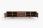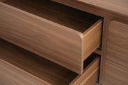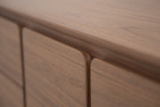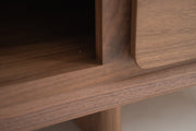 Gentlewood TV Stand – an embodiment of refined simplicity and natural charm. Crafted with a rich walnut veneer, this piece boasts smooth, rounded edges and a sleek, minimalist design that enhances any living space. Its spacious compartments and drawers offer both functionality and an uncluttered appearance, perfect for organizing media essentials. The Gentlewood TV stand brings warmth, elegance, and practicality to your home decor.