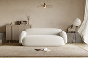 The Dori boucle sofa combines minimalist design with luxurious comfort. Its sleek profile features two rounded armrests and a tight seat, perfect for adding modern elegance to your living room.Designed in super soft, fluffy white boucle fabric, Dori's plush texture enhances visual appeal and comfort. The sofa backrest and seat are fully padded to allow you to relax. Add a lovely boucle sofa to your living room without delay!