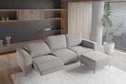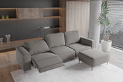 Virelo is a reclining sectional sofa that combines contemporary style with personalized comfort.With the sofa power recliner feature, you can effortlessly adjust the motorized footrests at the push of a button to ensure maximum comfort after a busy day. Whether you're reclining on the sofa for extra leg support or sitting with friends on the matching ottoman, the Virelo offers versatility and style to enhance your living space. Don't compromise on comfort - Buy now and experience the comfort for yourself!