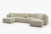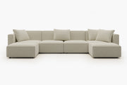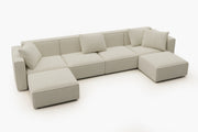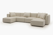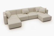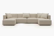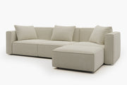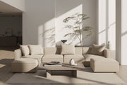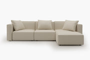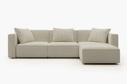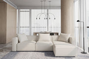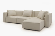 The Zola Sectional features modular design with a boxy and low-profile look. Crafted in casual style, square armrests and detailed pipe stitching around the edges finish the modern design. The elevated backrest and extra pillows provide ample lean-back support.