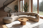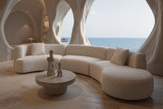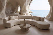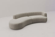 Comfort is key. This cocooning Formia sectional sofa is a typical model of snuggle-up, sink-in-to style. Its curvilinear lines resemble the shape of a cashew nut and the enveloping curves of the armrest and cushions create an inviting, intimate space. Thanks to its gliding seam details along the edge, Formia is snuggly, as well as sleek, chic and smart.
