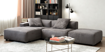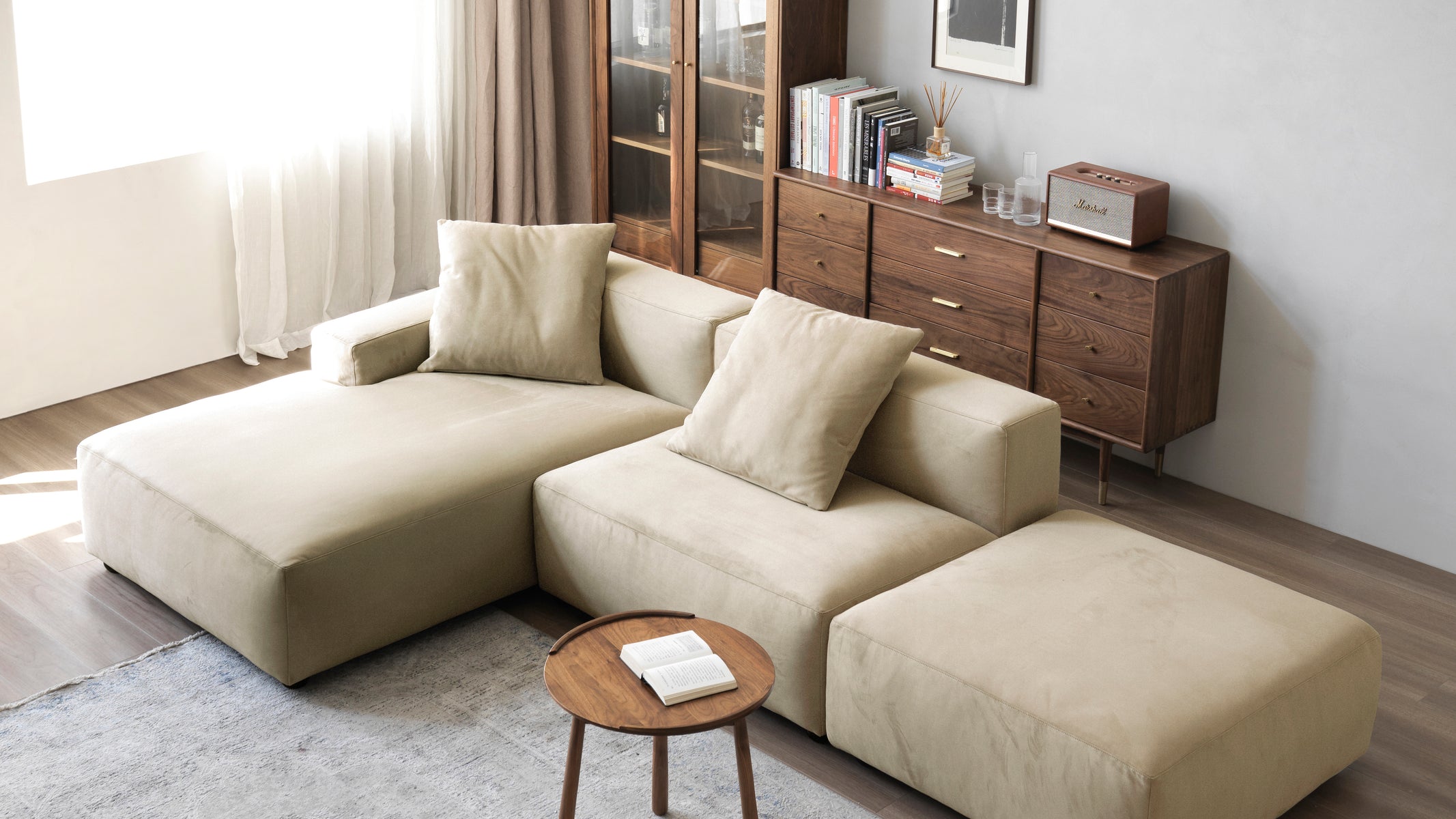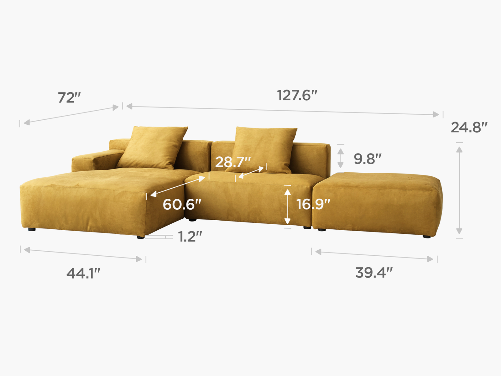 Marino Suedette 3-Piece Chaise Sectional Sofa with Ottoman by Acanva